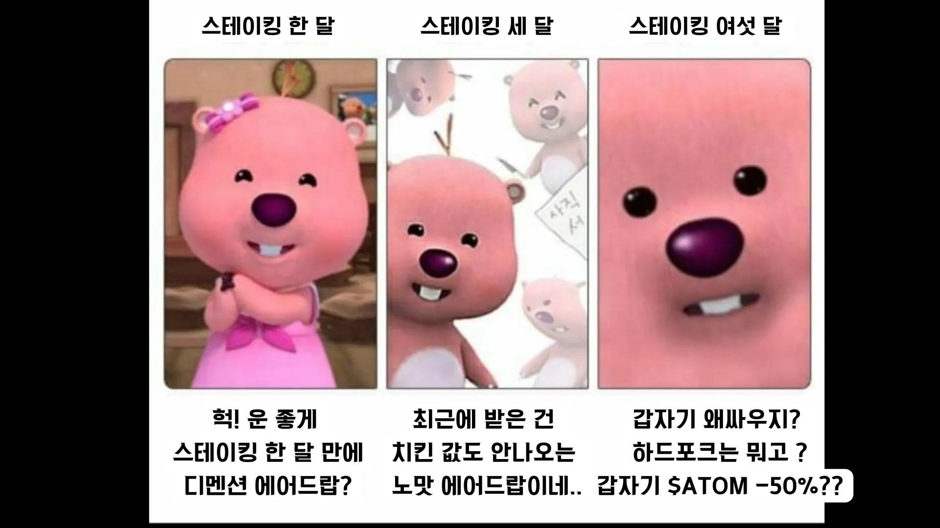 스테이킹을 하고 짧게는 한 달, 길게는 한 분기 혹은 반년이 걸려서 첫 에어드랍을 받을 수 있습니다. 자고로, 에어드랍은 기다림의 미학 입니다. 에어드랍에 대한 갈망이 극에 달하면 추후 달콤한 ‘스캠’에 소중한 자산을 탈취 당할 수 있겠지요?